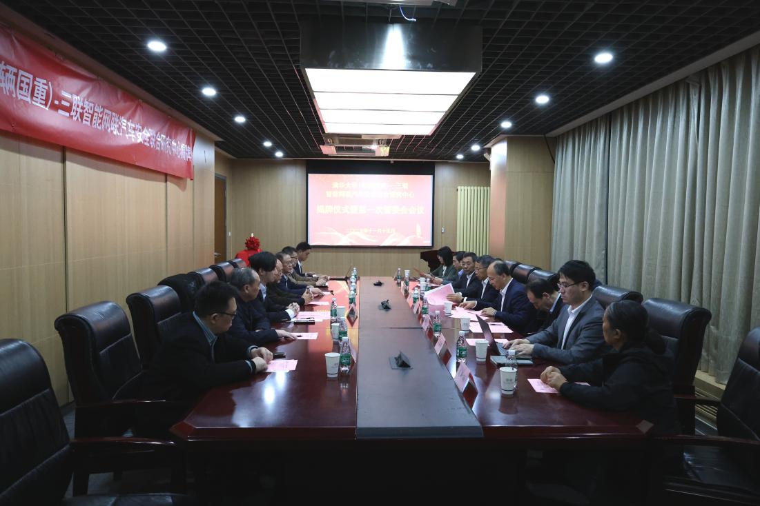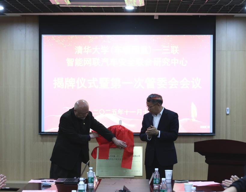 2025年11月15日,清华大学、安徽三联集团及安徽三联学院共建的“清华大学(车辆国重)-三联智能网联汽车安全联合研究中心”(简称“中心”)揭牌仪式暨第一次管委会会议在清华大学李兆基大楼举行。清华大学国重管理中心副主任王进廷出席会议并致辞,中国工程院院士、清华大学车辆国重主任、中心管委会主任李克强,三联创始人、中心首席科学家金会庆,安徽三联集团董事长、安徽三联学院董事长余皖生,中心主任季学武,中心副主任张树林、高博麟以及中心核心成员等出席会议。会议由清华大学车辆与运载学院院长助理张静一主持。
